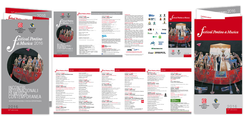 Anche per il 2017 abbiamo curato la promozione del Festival Pontino realizzando diverso materiale: manifesti di vari formati, programmi di sala, pieghevoli, catalogo e locandine.